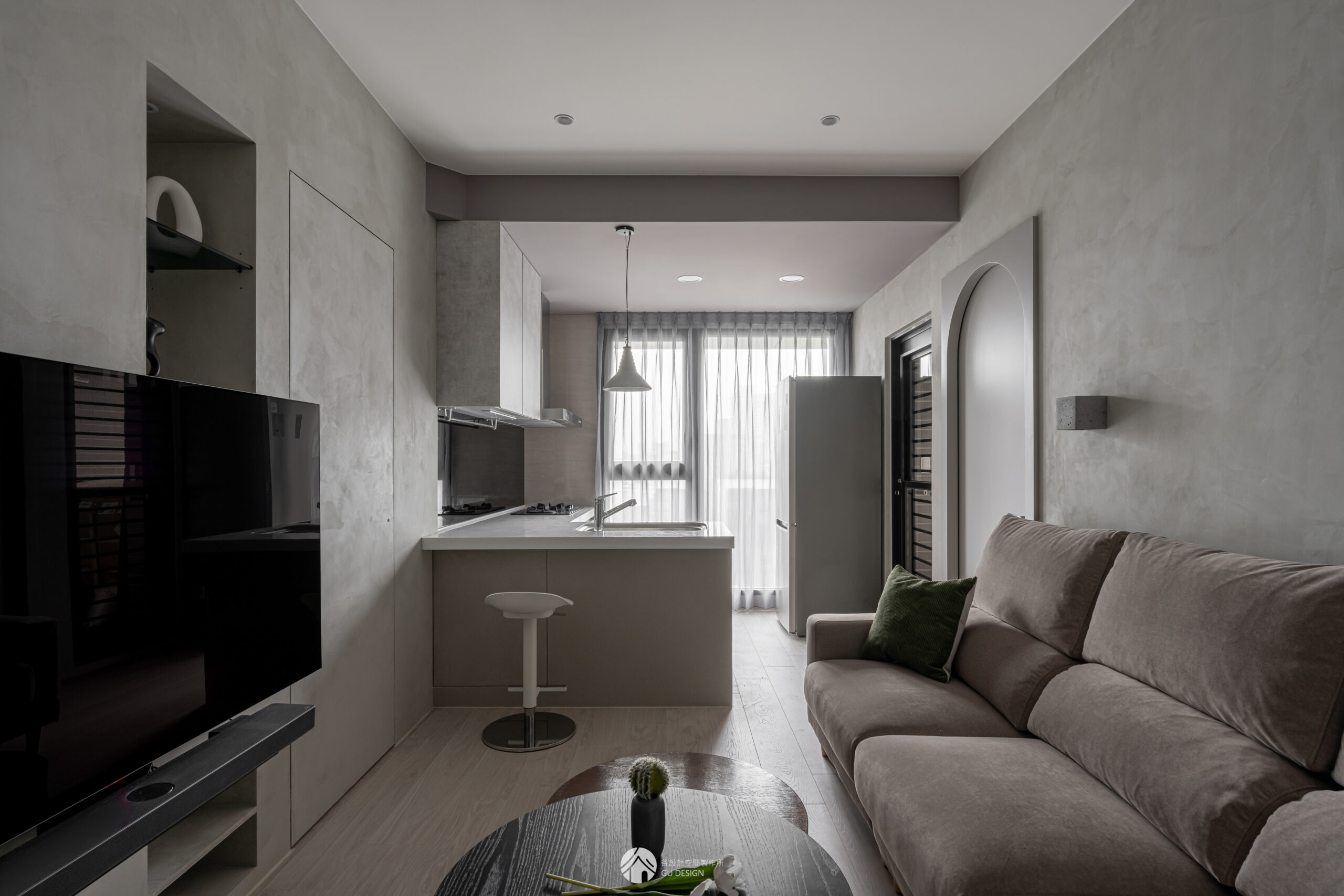 谷設計擅長將劣勢轉為亮點,利用簡單材料與概念延伸,打造具有故事性的空間表情。預算控制之下,達成比訂製宅更高階的鮮明主題宅與品牌識別。