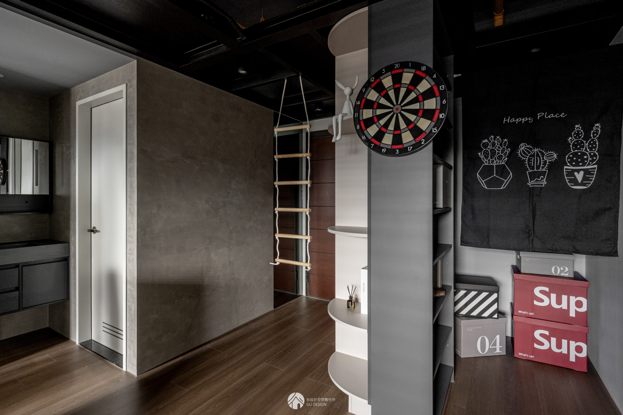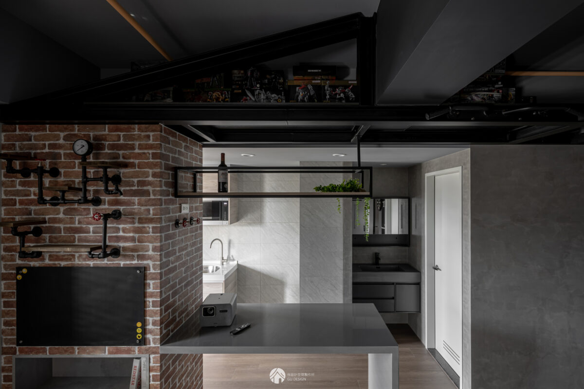 坪數有限時,平面空間容易不足,善用天花高度規劃鋼構夾層,可放置屋主喜愛的公仔收藏。