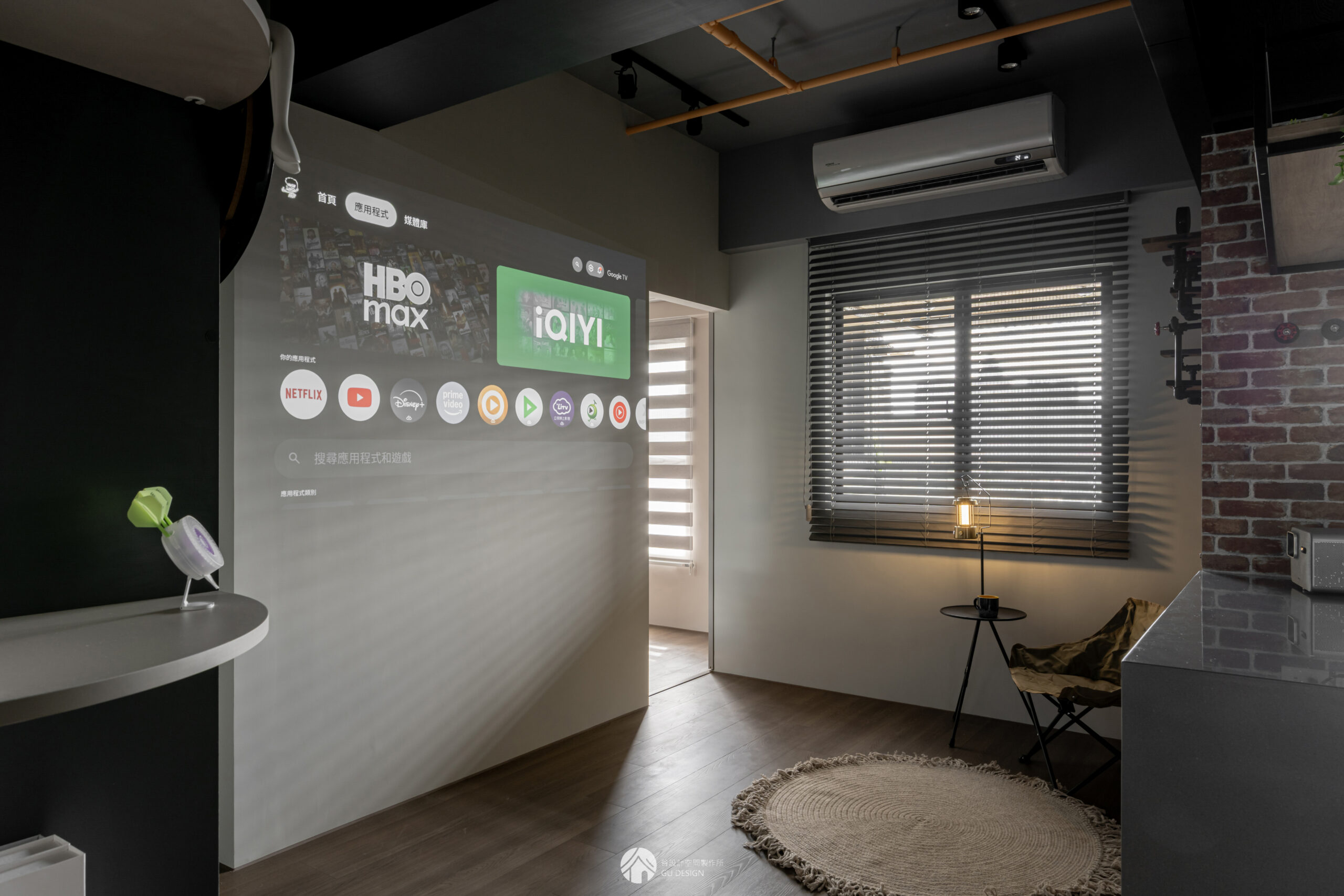 屋主重視活動與運動需求,若採用傳統沙發與電視配置,將壓縮可活動的空間範圍。因此捨棄制式家具配置,改以結合興趣的露營椅與投影牆取代。可依需求自由切換形式,無論是觀影或運動皆能兼顧。