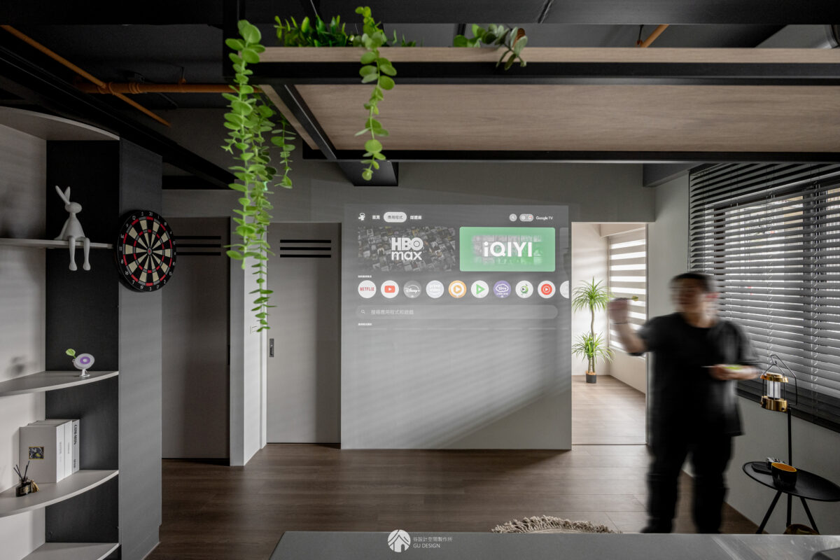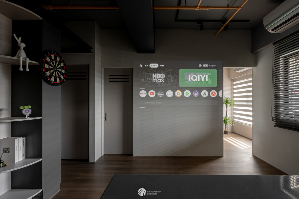 除了觀影功能,客廳亦是一座多功能遊樂場。可以做 TRX、空中瑜伽、拉單槓和射飛鏢,讓家庭成員在日常生活中融入多樣活動。運動與休憩並存,使客廳成為充滿能量與互動的核心空間。